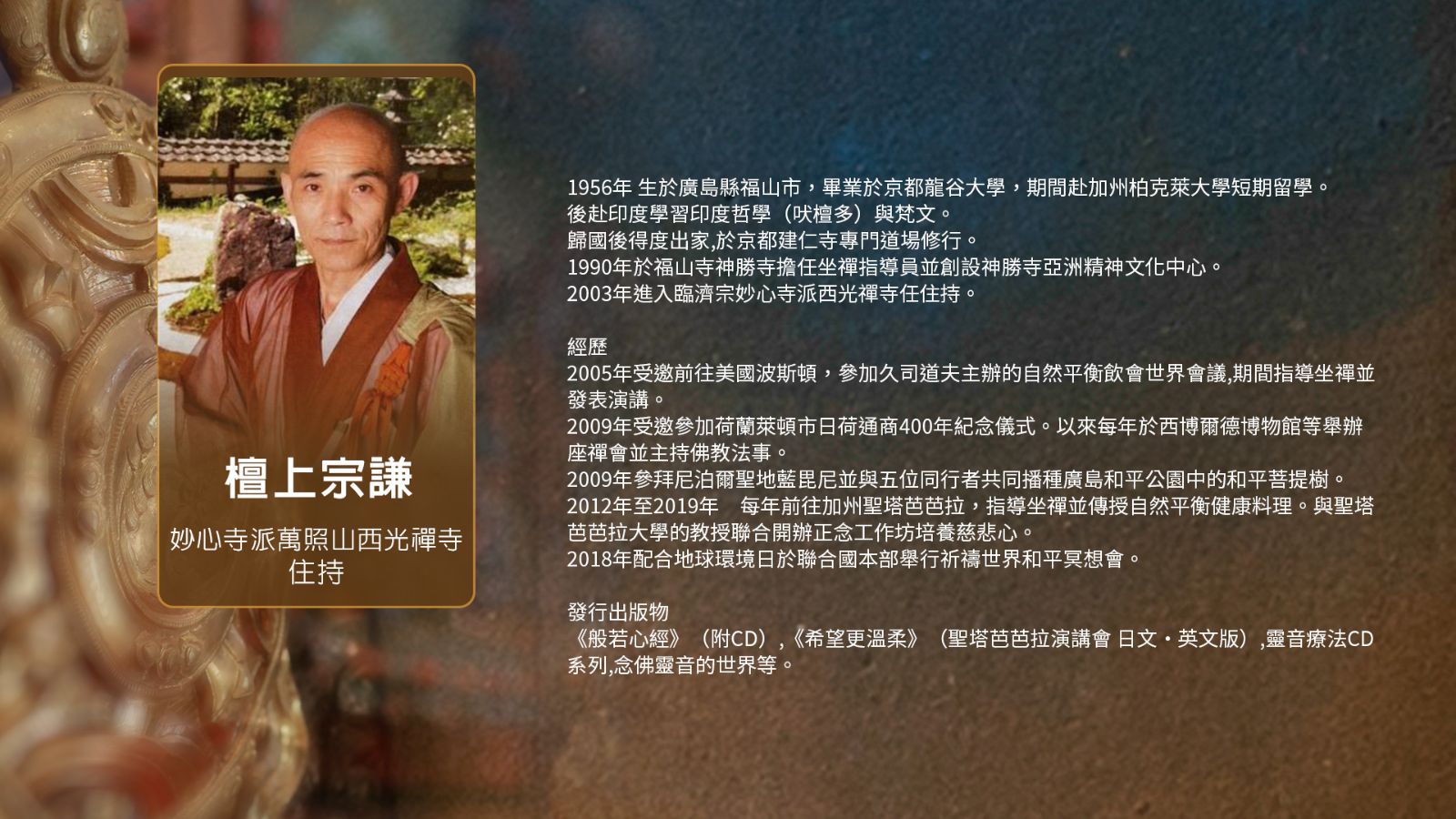 (六)講演者:臨濟宗妙心寺派萬照山西光禪寺住持 檀上宗謙