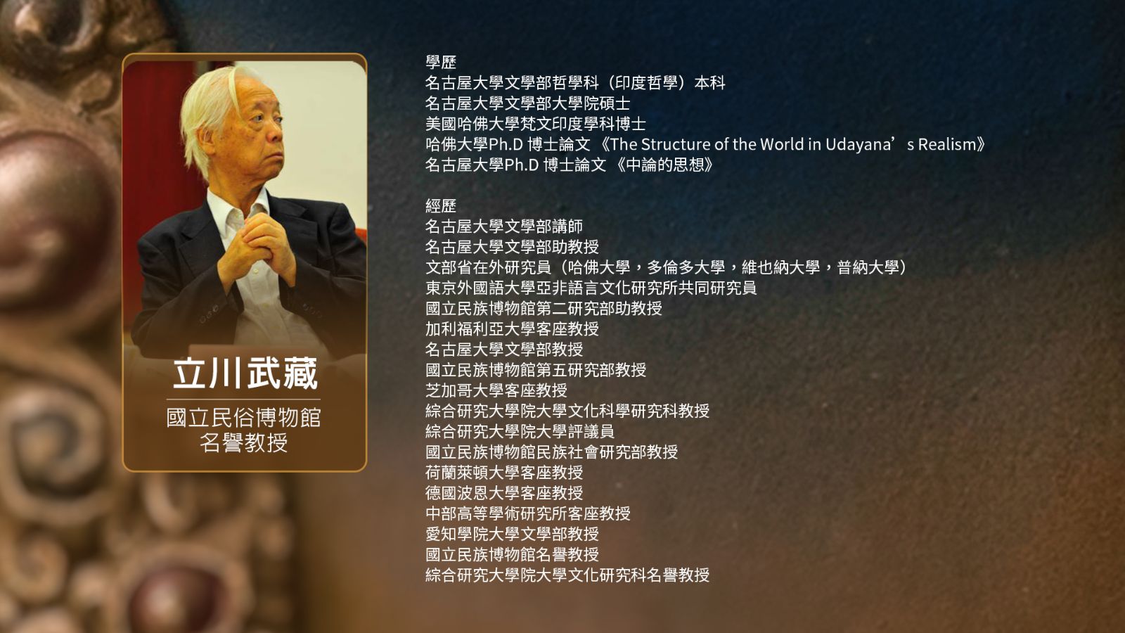 (一)講演者:國立民俗博物館名譽教授 立川武藏